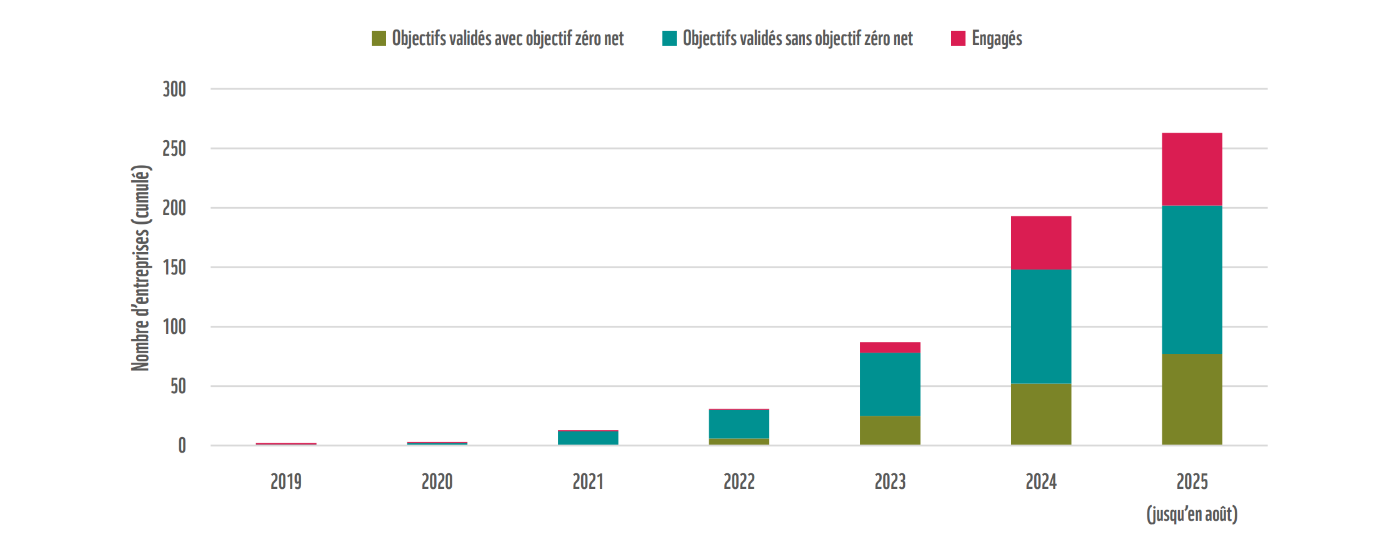 Grâce à la forte demande des entreprises, la SBTi est devenue ces dernières années la norme officieuse pour les objectifs climatiques des entreprises. À la mi-2025, plus de 11 500 entreprises faisaient partie de la SBTi, dont près de 9 000 avec des objectifs déjà validés.