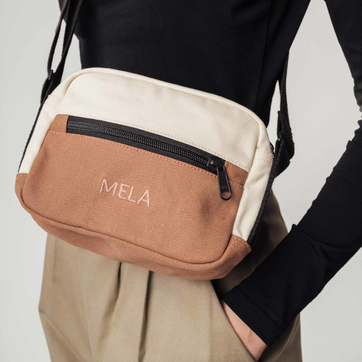 Die strapazierfähige Umhängetasche aus biologischem Canvas Gewebe bietet durchdachten Stauraum. Ein grosses Hauptfach mit Innenfach sowie ein zusätzliches Fach auf der Vorderseite sorgen für Ordnung. Hochwertige, wasserdichte Reissverschlüsse schützen Ihre Essentials zuverlässig.
