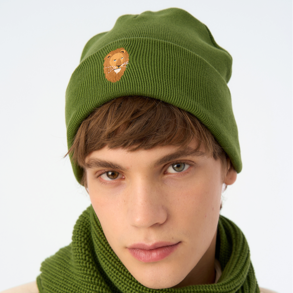 Die bestickte Strickmütze hat eine trendige, lockere Passform. Sie besteht zu 100 % aus Bio-Baumwolle und bietet mit ihrem kuscheligen Material Wärme und Komfort an kalten Tagen.