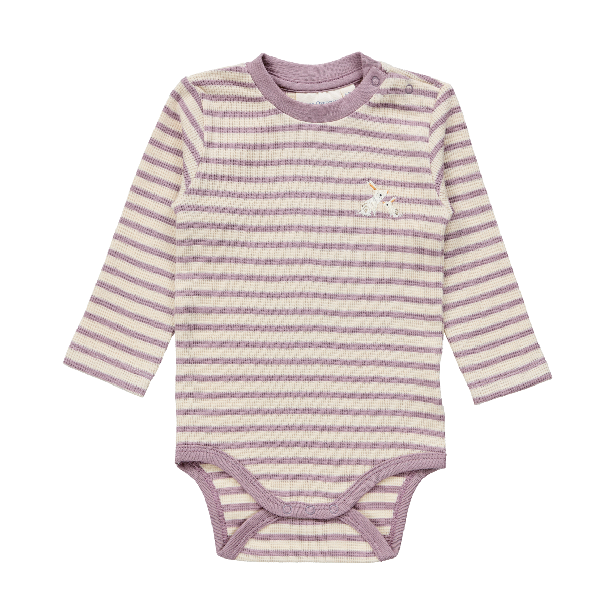 Der Body hat lange Ärmel, einen Rundhalsausschnitt sowie nickelfreie Druckknöpfe an der Schulter und im Schrittbereich – damit wird das An- und Ausziehen zum Kinderspiel. Dank des feinen Waffel-Stoffs aus Bio-Baumwolle ist er angenehm weich und atmungsaktiv.