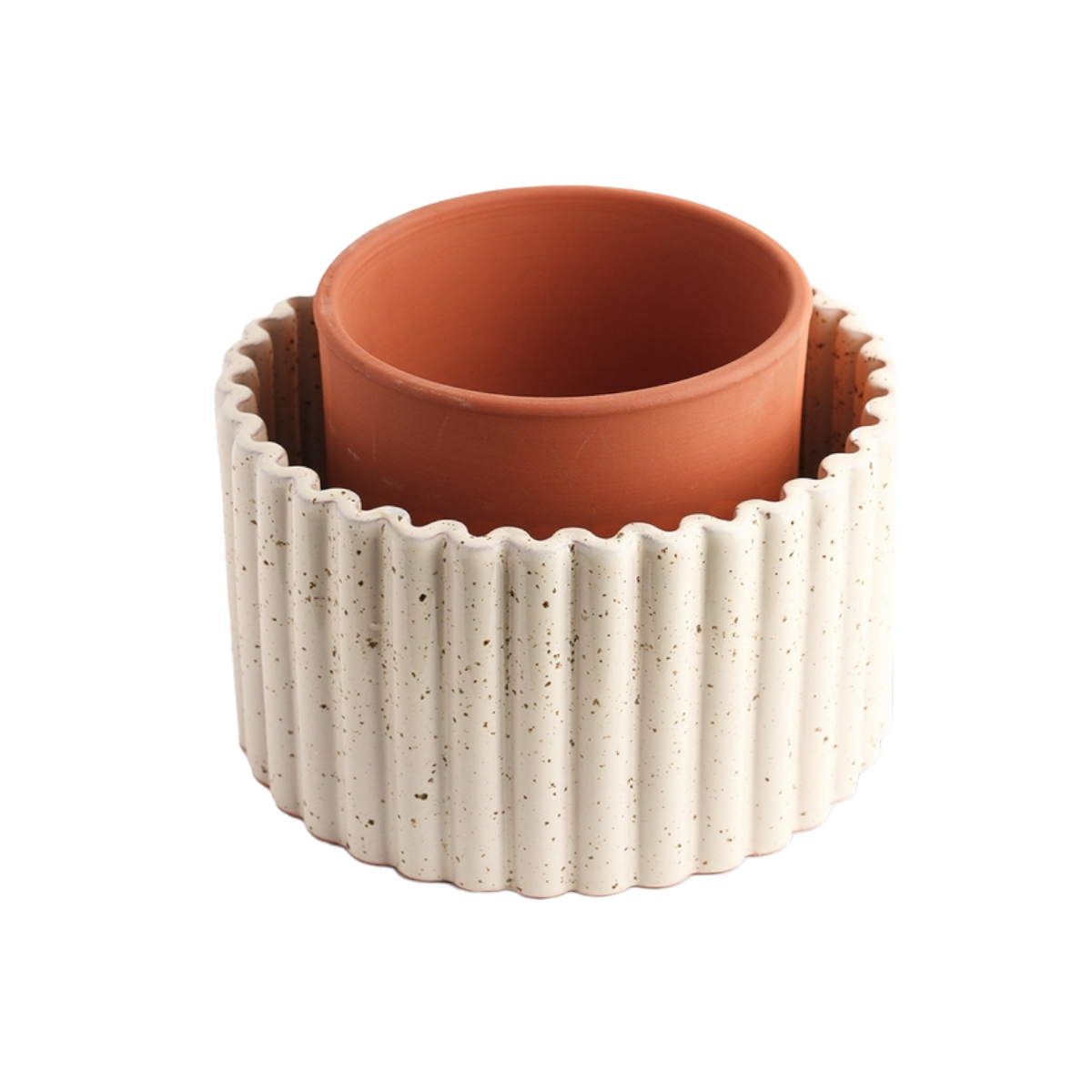 Dieser selbstbewässernde Blumentopf verbindet traditionelle Handwerkskunst mit Innovation. Dank der natürlichen Porosität von Keramik wird Wasser langsam und stetig an die Erde abgegeben – eine bewährte, sanfte Methode, die Ihre Pflanzen optimal bewässert.