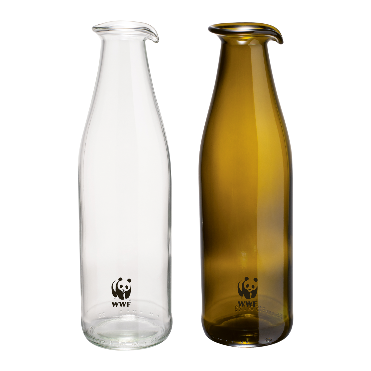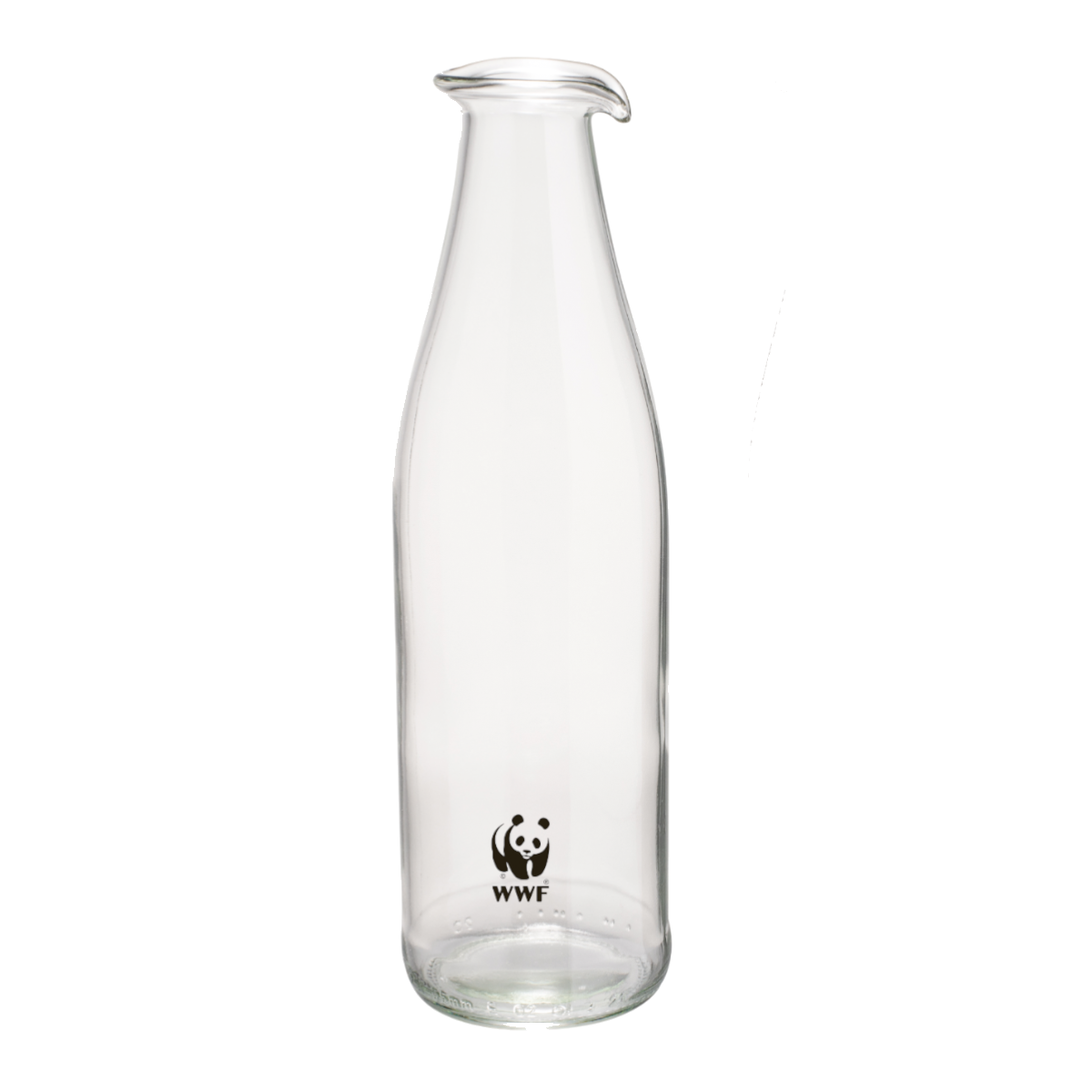 Die WWF Wasserkaraffee aus upgecycelten Weinflaschen dient gleichzeitig als Blumenvase. Sie ist das ideale Geschenk – nachhaltig, zirkulär und in Europa produziert.