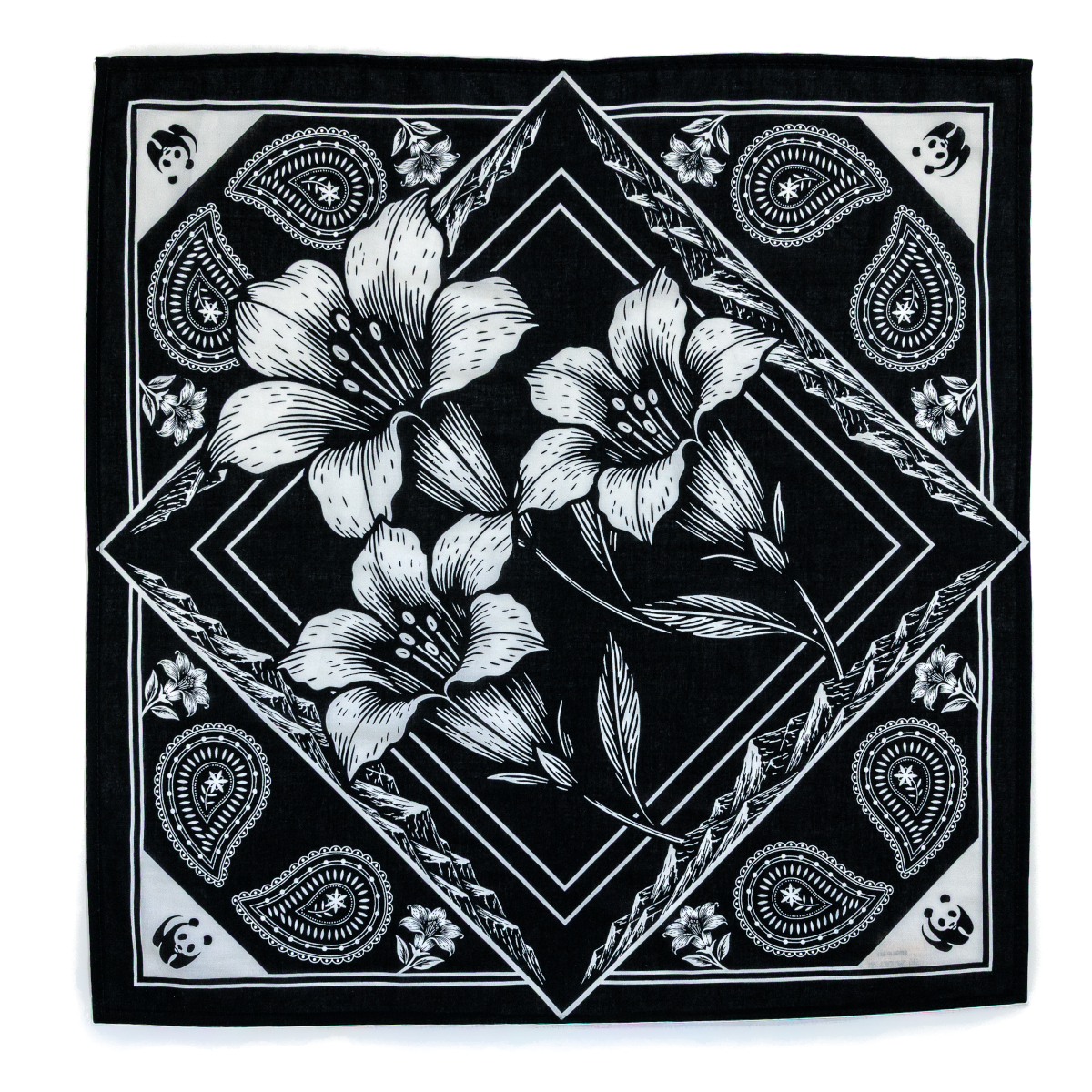 Questo classico fazzoletto glaronese bianco e nero è dedicato alla genziana, il fiore nazionale non ufficiale della Svizzera. Oggi molte specie di genziana sono protette perché minacciate dalla perdita degli habitat e dallo sfruttamento eccessivo: questo articolo permette di lanciare un segnale visibile a favore della protezione della natura.