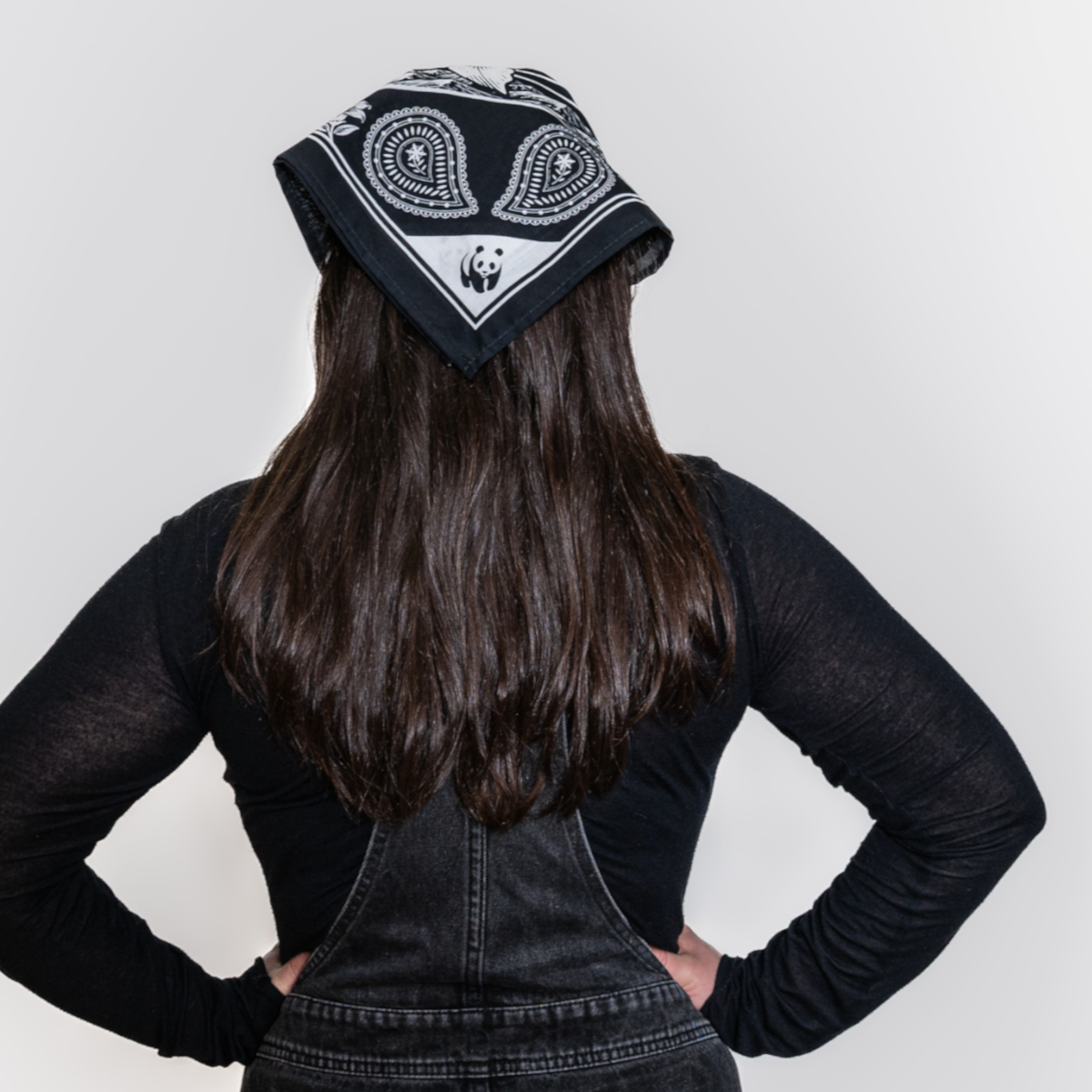 Il fazzoletto glaronese del WWF in cotone biologico è davvero versatile: può essere indossato al collo oppure come copricapo, accessorio casual, fascia per capelli oppure come alternativa sostenibile alla carta da regalo. Una bandana per da indossare tutti giorni e anche nelle occasioni speciali.