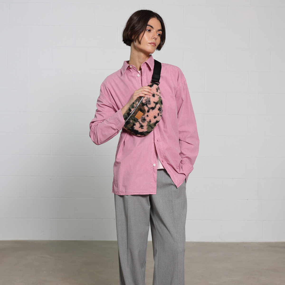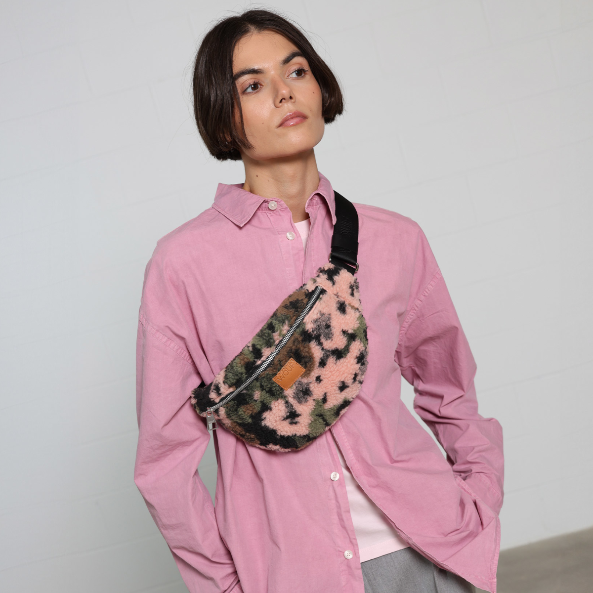 Questo grande marsupio unisce comfort, funzionalità e sostenibilità in un accessorio elegante. Realizzato in Spagna in morbido teddy con poliestere riciclato, è davvero comodo da indossare.